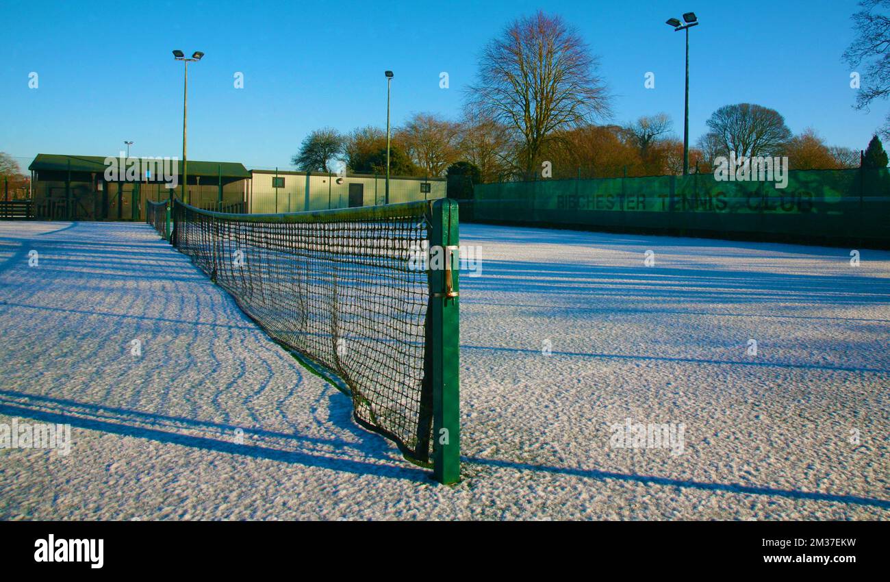 A tennis court covered in snow and ice Ribchester Preston Lancashire
