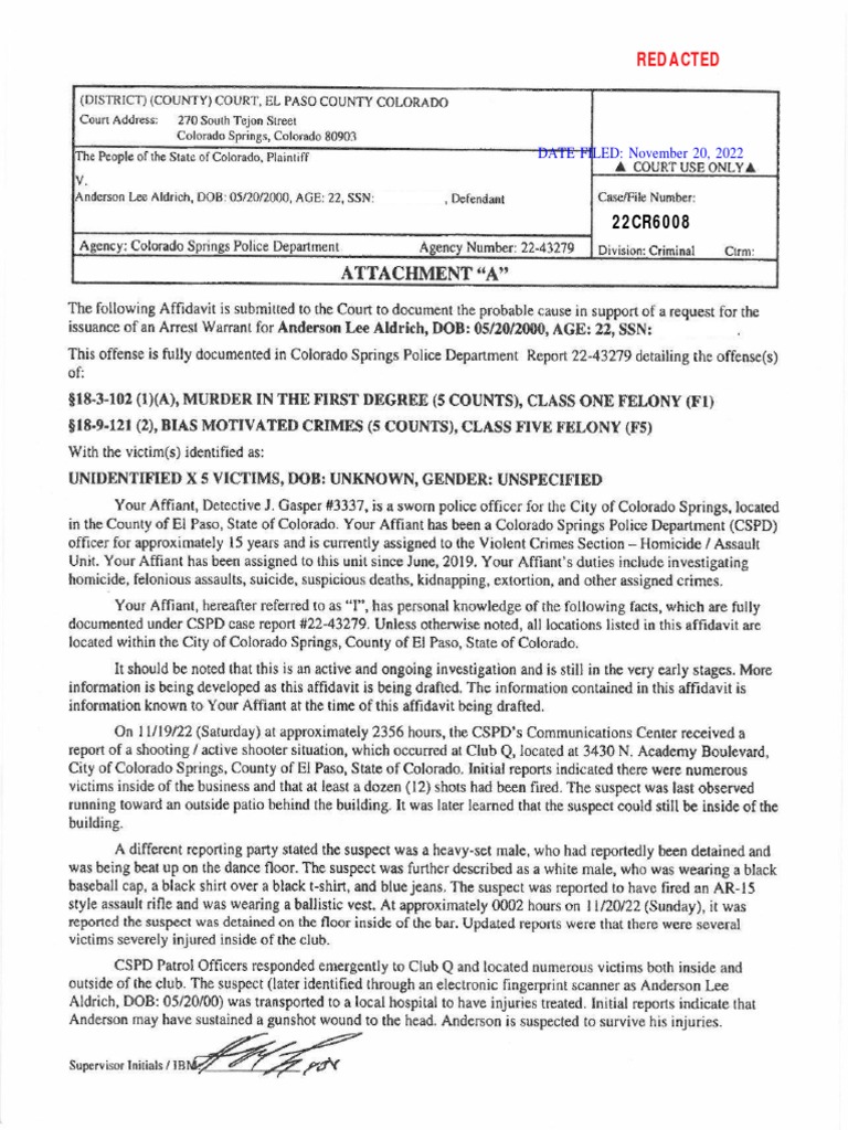 Club Q Shooter Anderson Lee Aldrich Affidavit: The Tragic Revelations