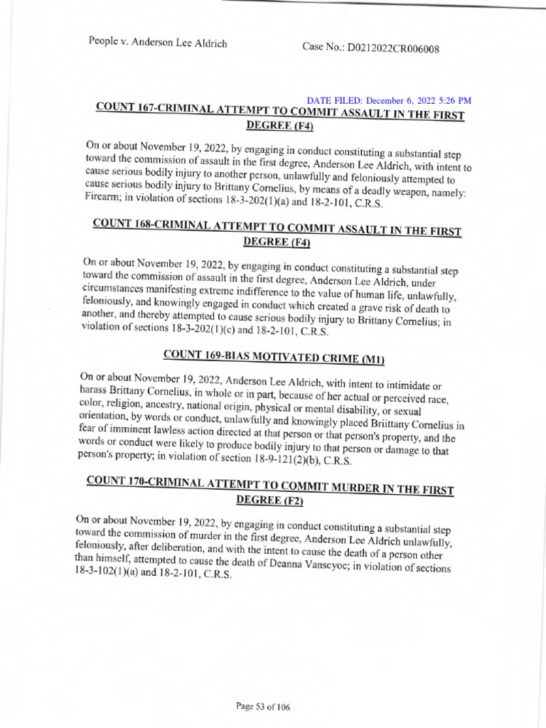 Anderson Lee Aldrich charged withcrimes in Club Q shooting