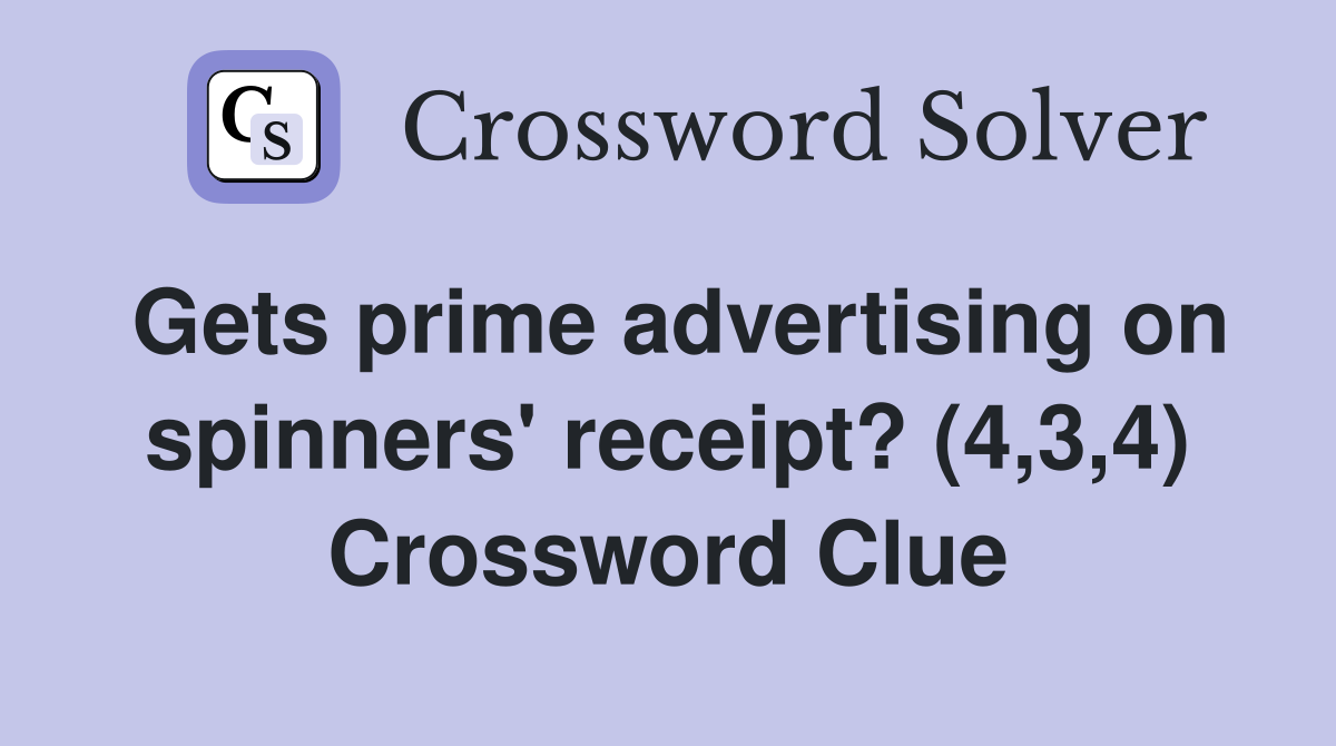 Gets prime advertising on spinners #39 receipt? (4 3 4) Crossword Clue