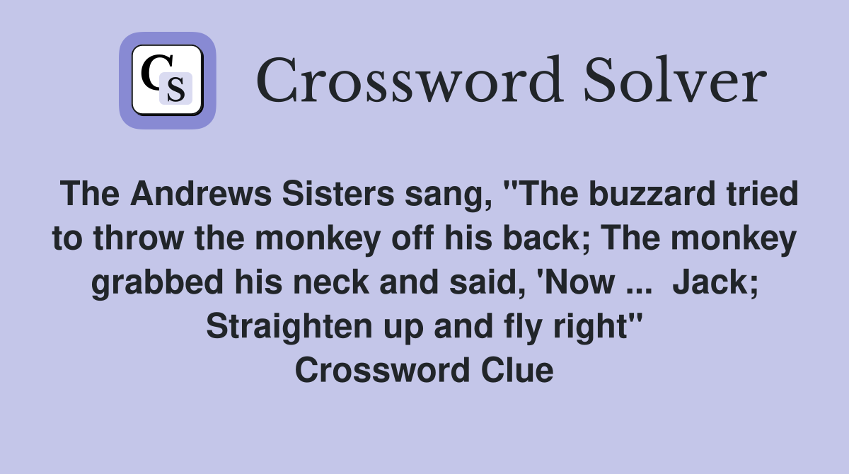 The Andrews Sisters sang quot The buzzard tried to throw the monkey off