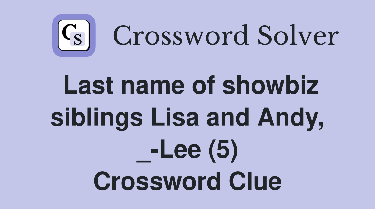 Last name of showbiz siblings Lisa and Andy Lee (5) Crossword Clue