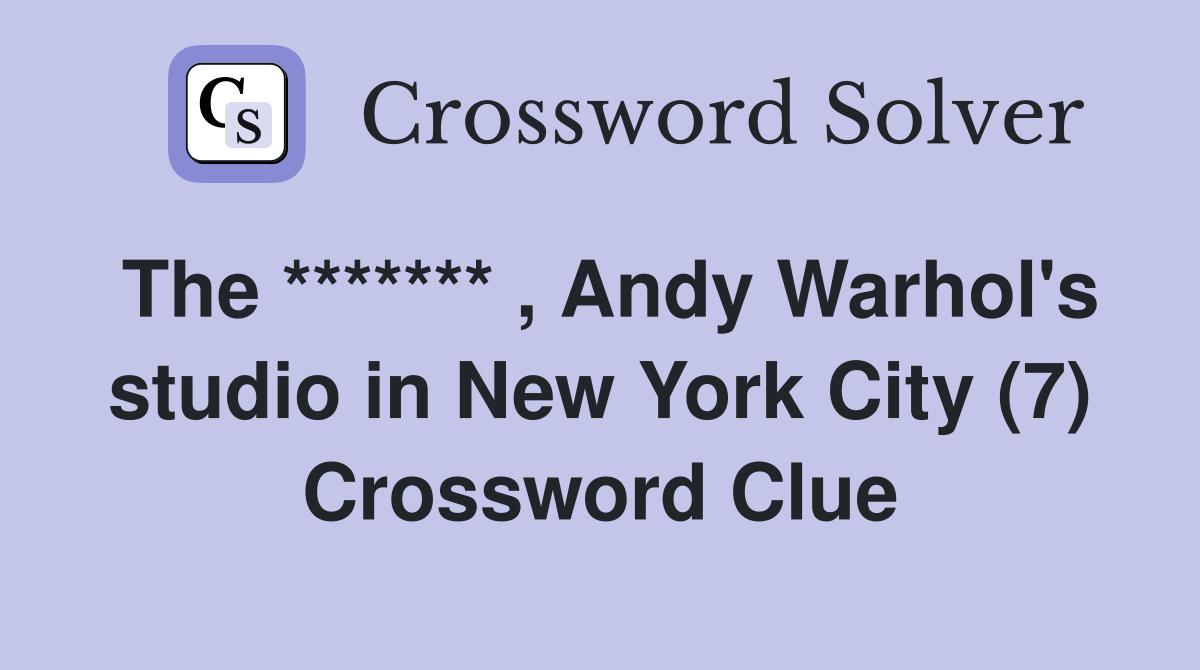 The ******* Andy Warhol s studio in New York City (7) Crossword