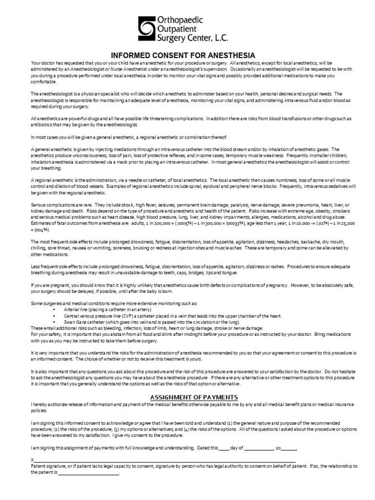 Anesthesia Consent Download Free PDF Anesthesia Informed Consent