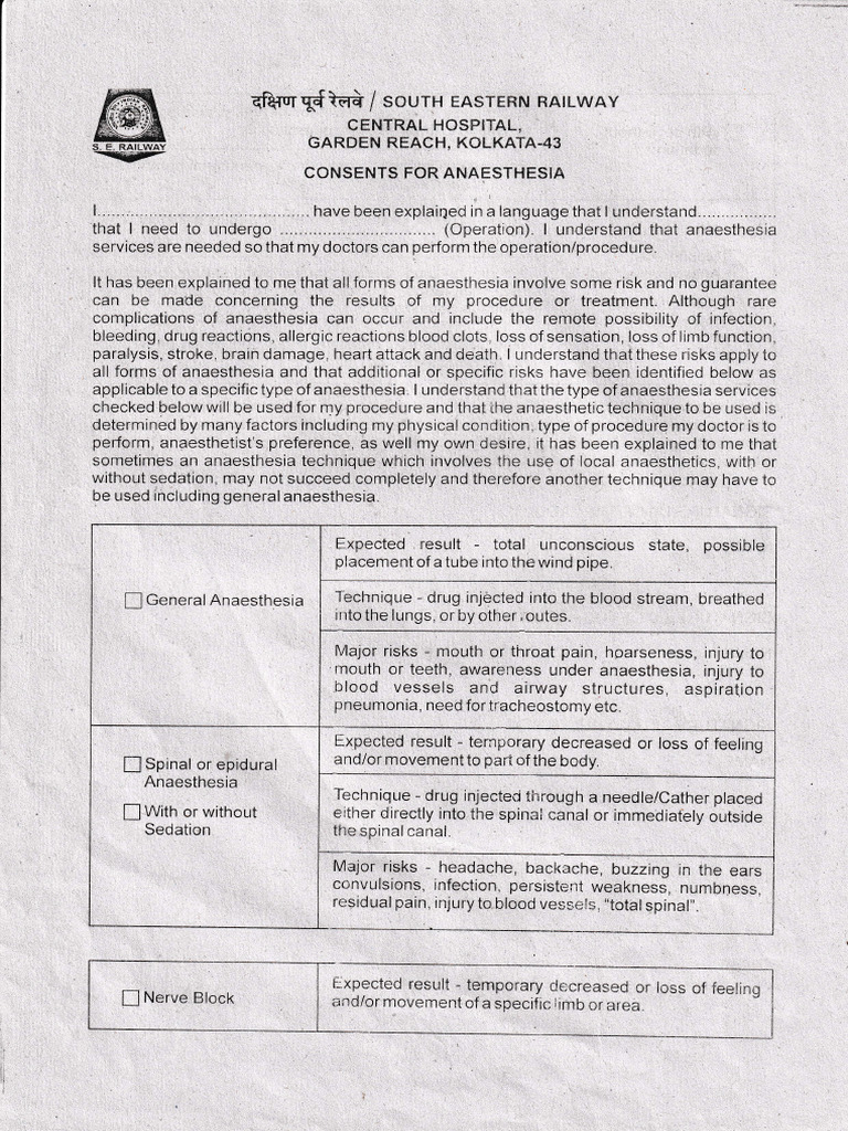 Anesthesia Consent Download Free PDF Anesthesia Pain