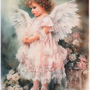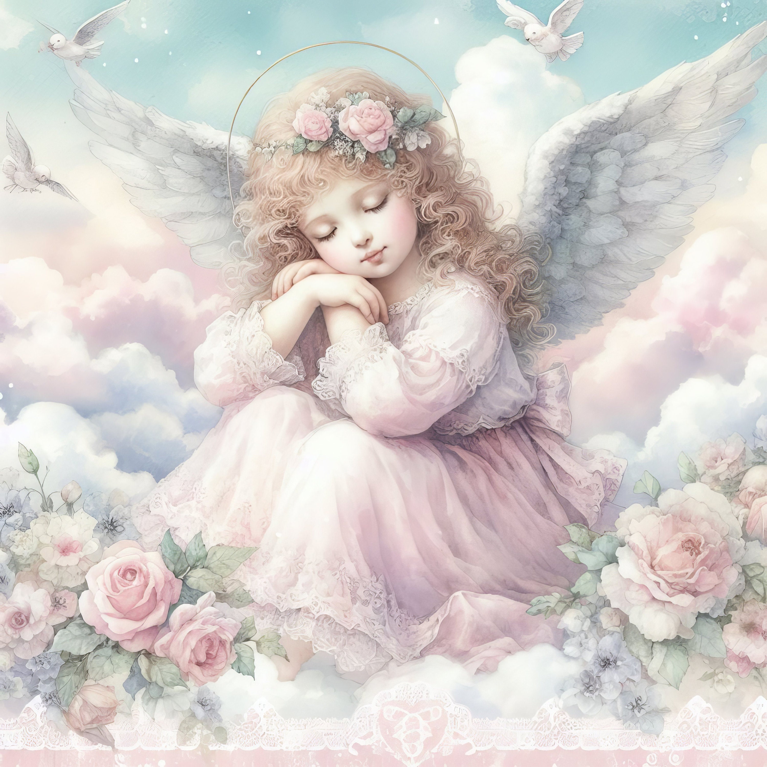 Little Girl Angels Digital for Rice Paper Decoupage Watercolor Baby