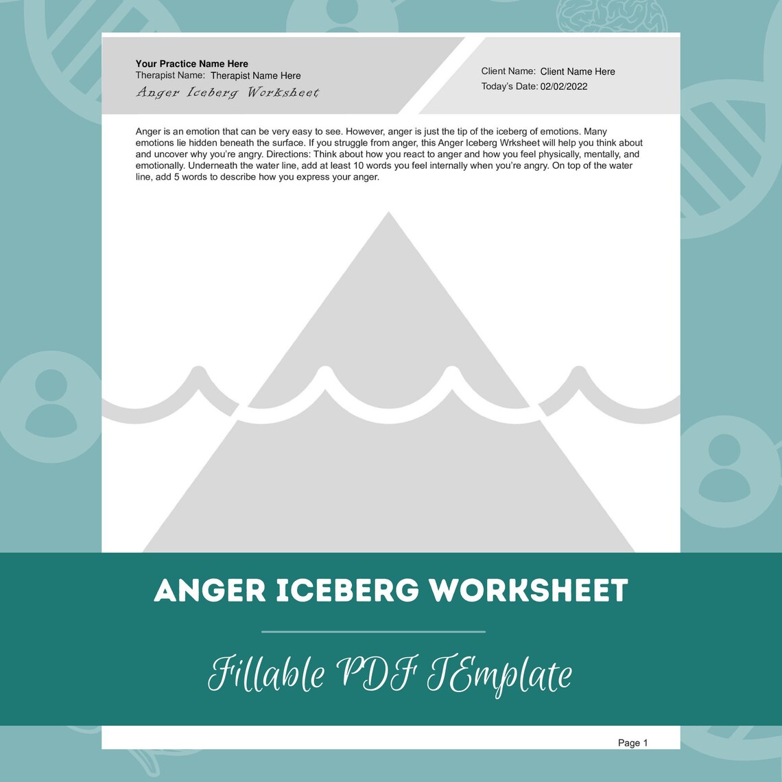 Anger Iceberg Worksheet Editable / Fillable PDF for Counselors