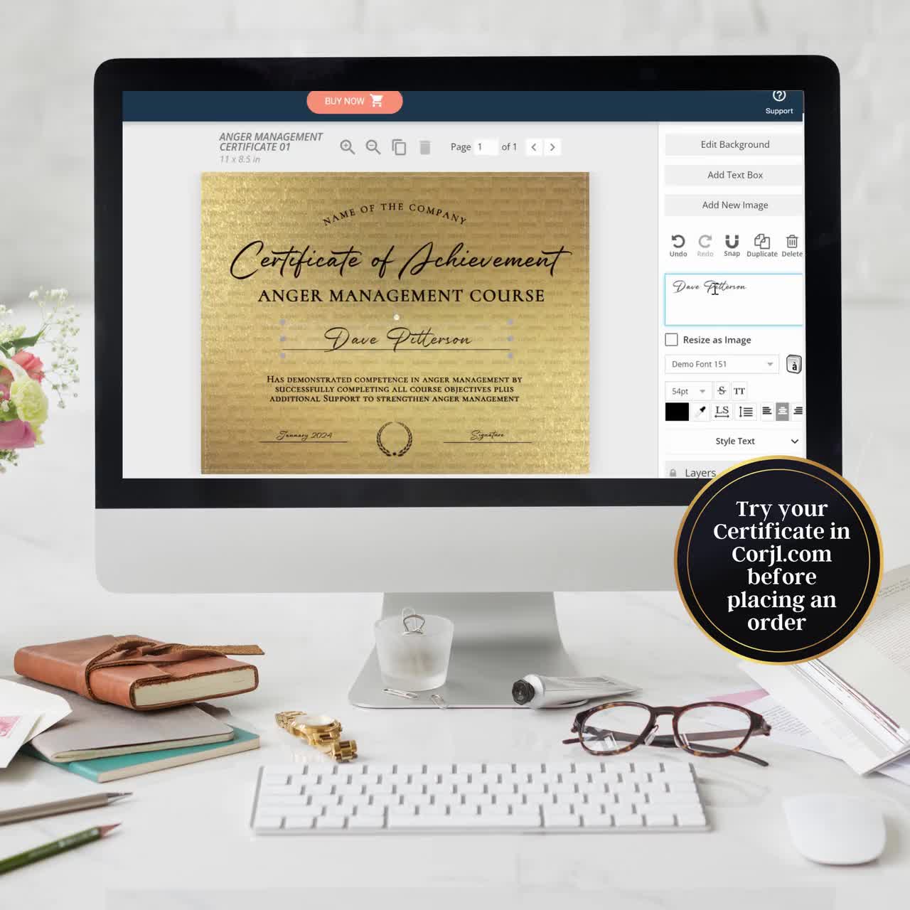 Formal and editable anger management certificate template