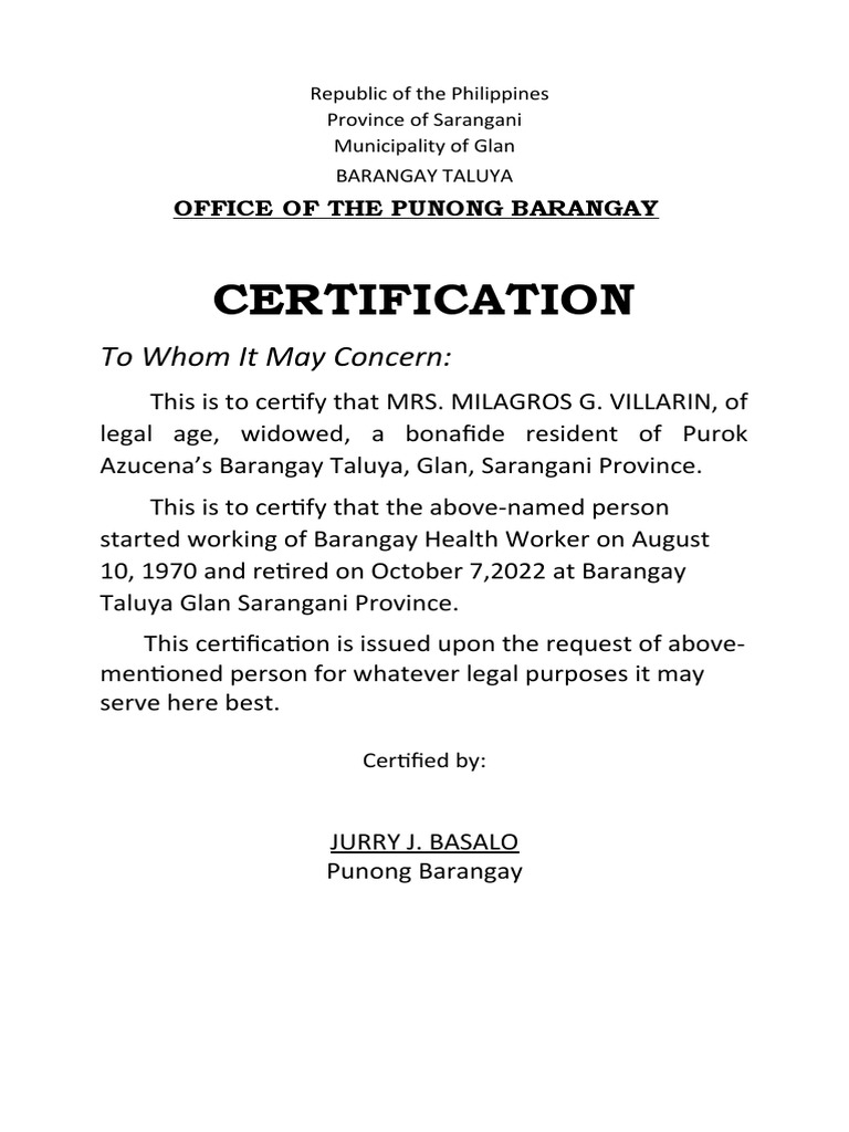 Barangay Certification PDF