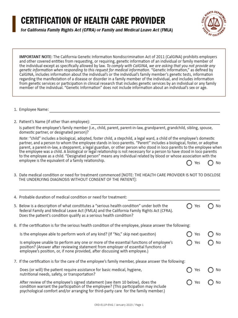 CFRA Certification Health Care Provider ENG PDF