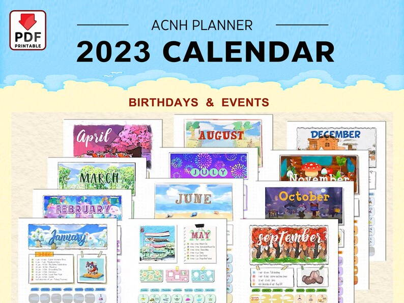 Animal Crossing 2023 Monthly Calendar Northern Hemisphere Instant