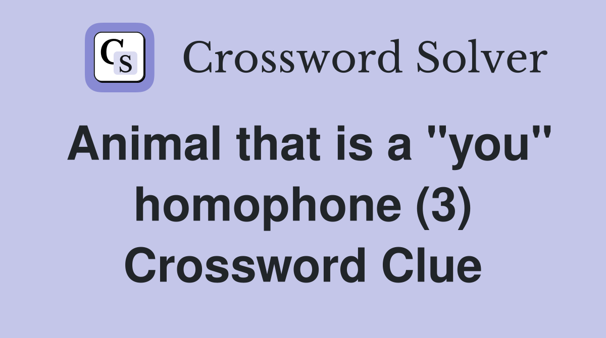 Animal that is a quot you quot homophone (3) Crossword Clue Answers