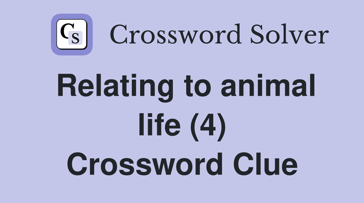 Relating to animal life (4) Crossword Clue Answers Crossword Solver