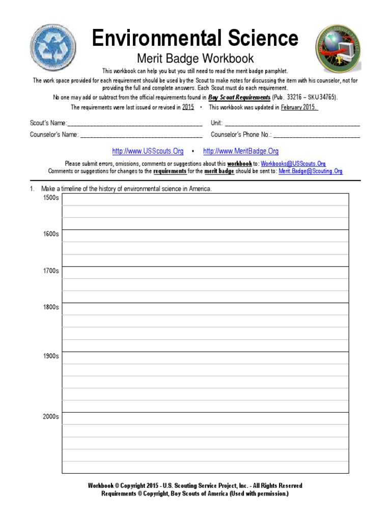 Bsa Environmental Science Merit Badge Worksheet Printable PDF Template