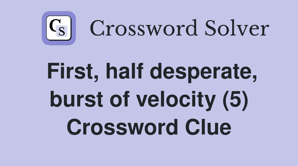 First half desperate burst of velocity (5) Crossword Clue Answers