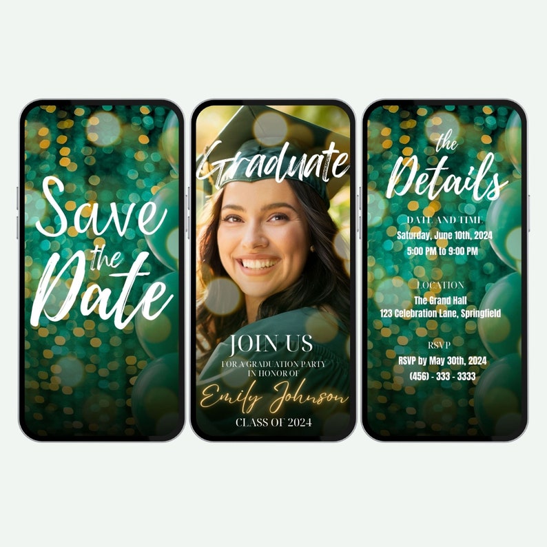 2024 Grad Party Invitation Video Graduation Invitation Green Theme