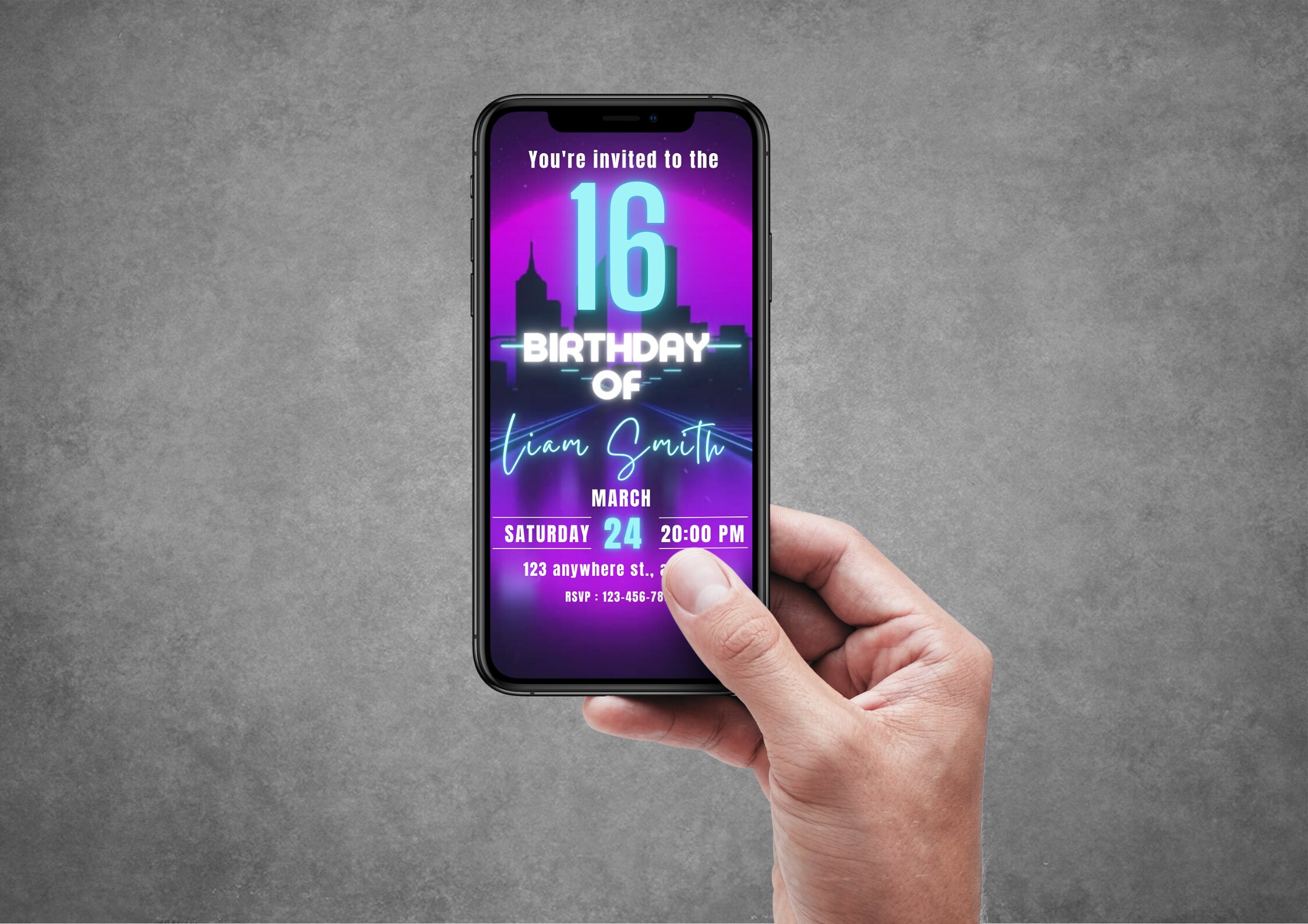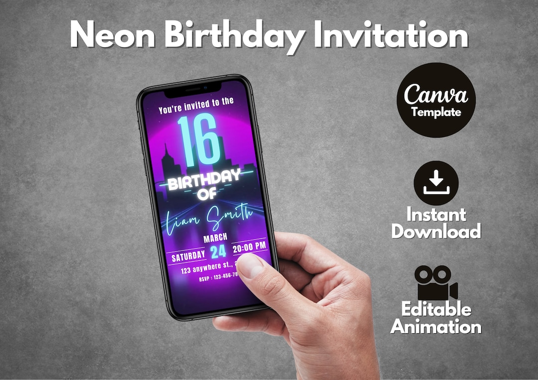 Editable Neon Birthday Party Animated Video Invitation Template Mobile