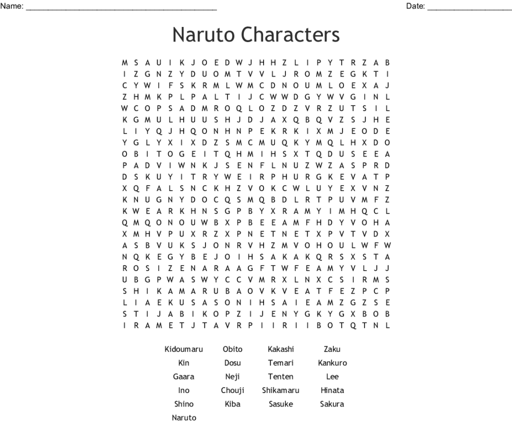Naruto Characters Word Search WordMint Printable Word Search