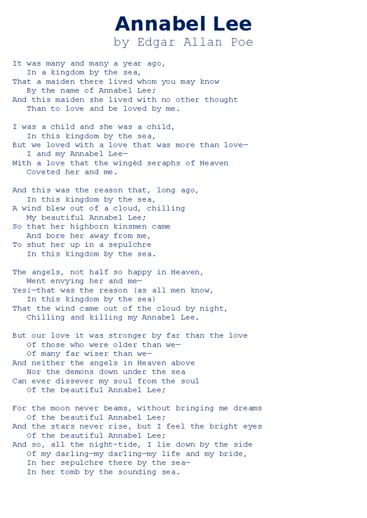What Literary Devices Are In Annabel Lee at Emma Lowell blog