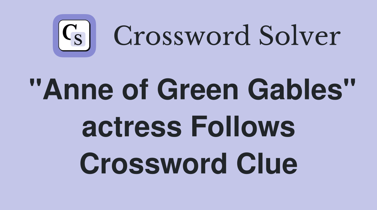 quot Anne of Green Gables quot actress Follows Crossword Clue Answers