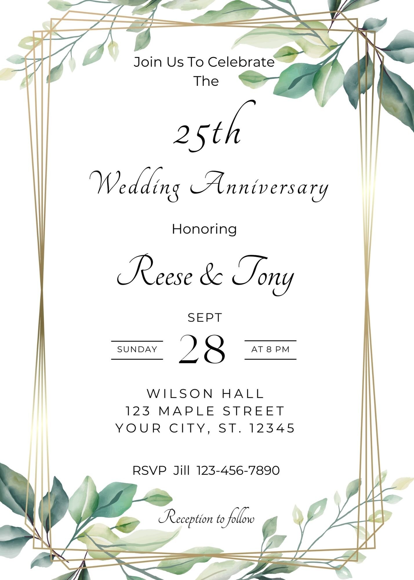 Wedding Anniversary Invitation Template 30th 25th 10th 40th 60th 50th
