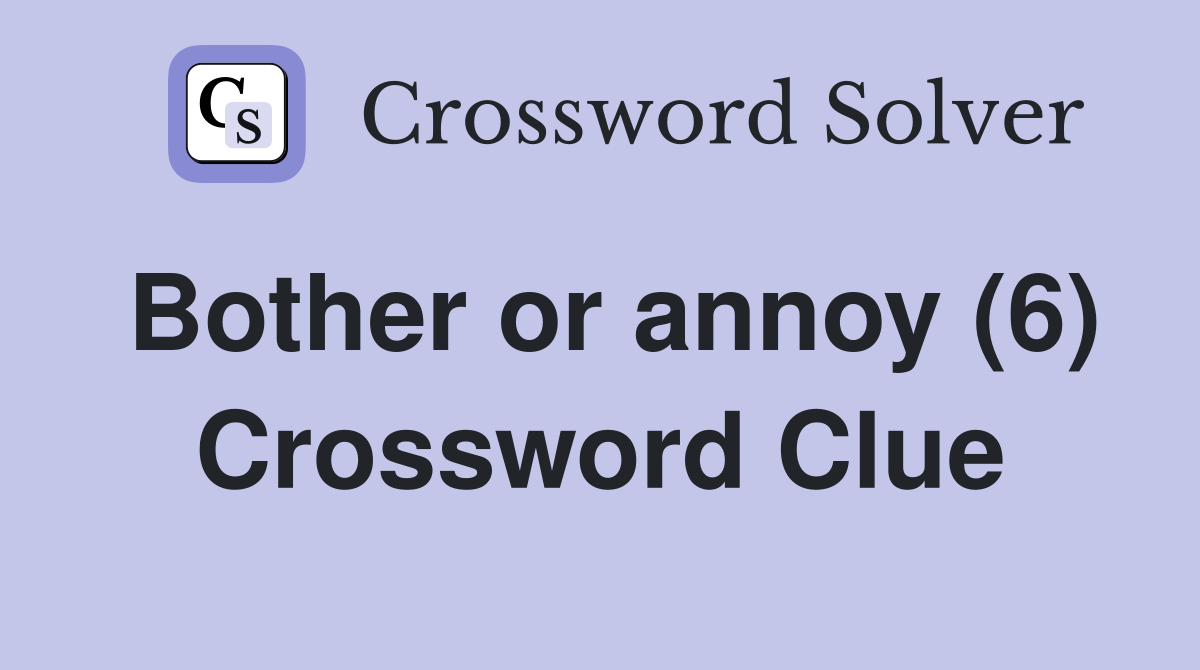 Bother or annoy (6) Crossword Clue Answers Crossword Solver