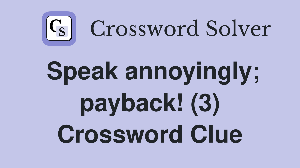 Speak annoyingly payback (3) Crossword Clue Answers Crossword Solver