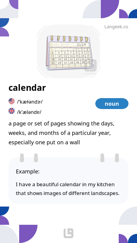 Definition Meaning of Calendar LanGeek