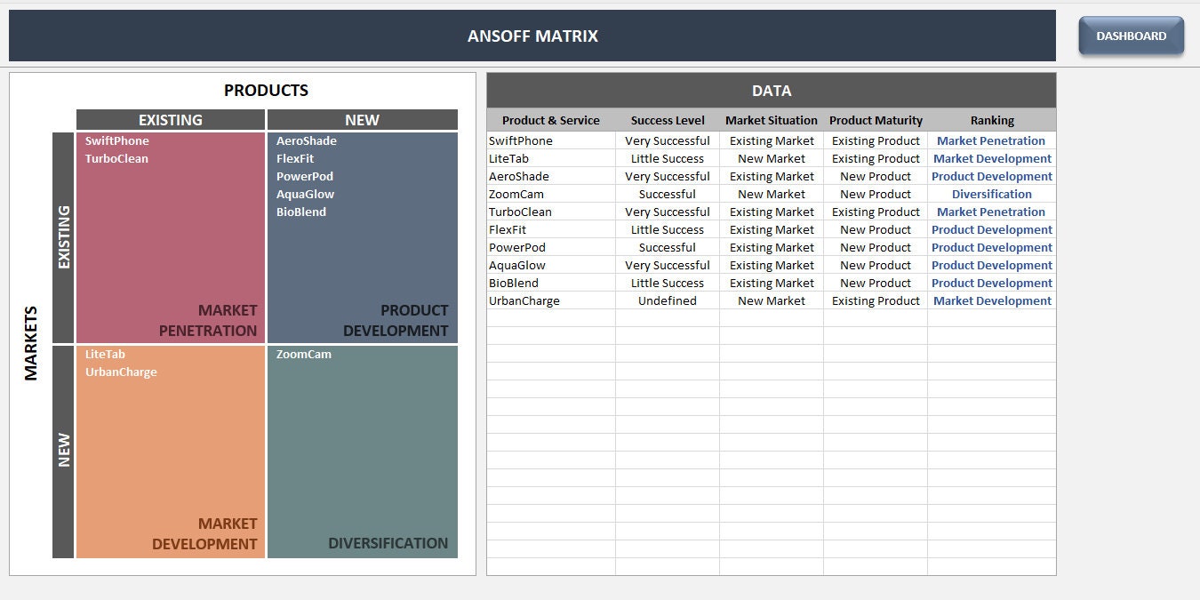 Ansoff Matrix Excel Template Ansoff Analysis Ansoff Growth Matrix