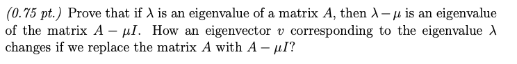 Solved ( 0 75pt ) Prove that if λ is an eigenvalue of a Chegg com