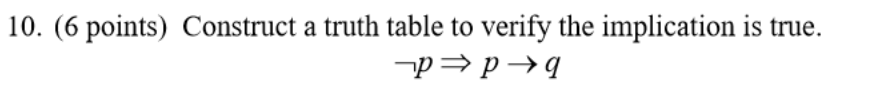 Solved 10 (6 points) Construct a truth table to verify the Chegg com