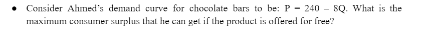 Solved • Consider Ahmed #39 s demand curve for chocolate bars to Chegg com
