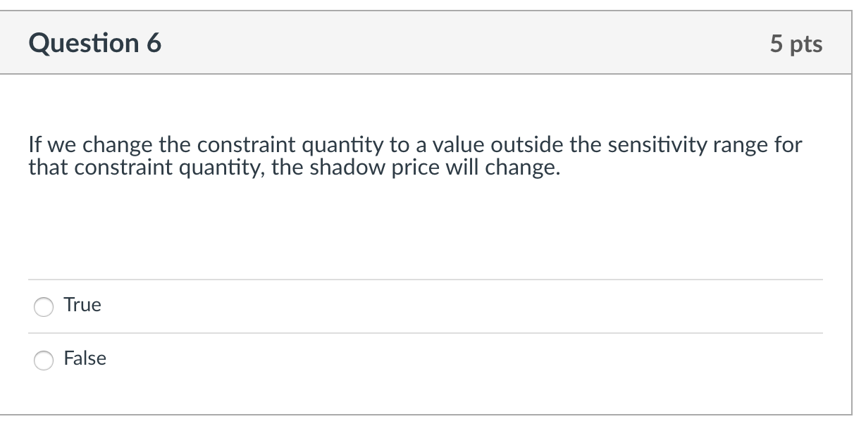 Solved Question 6 5 pts If we change the constraint quantity Chegg com
