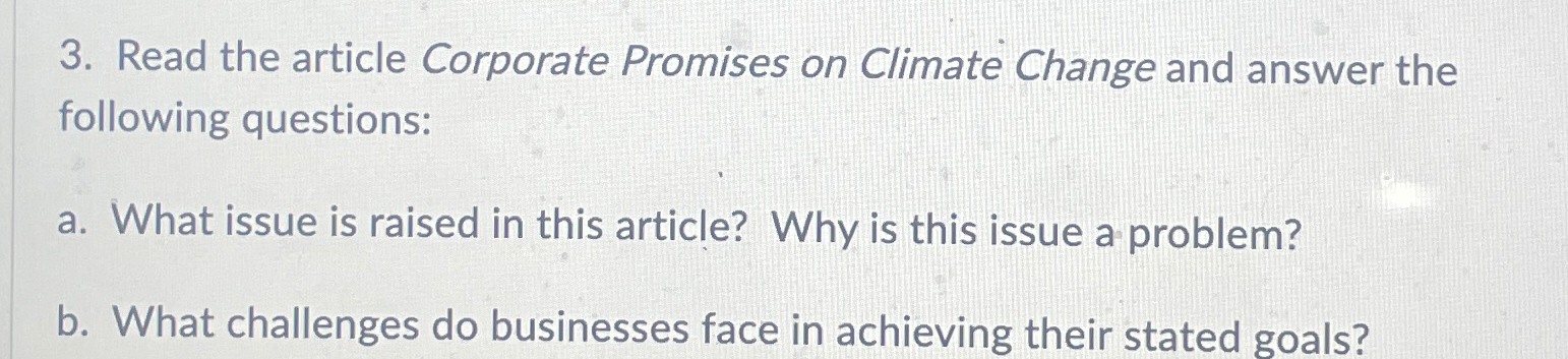 Solved Read the article Corporate Promises on Climate Change Chegg com