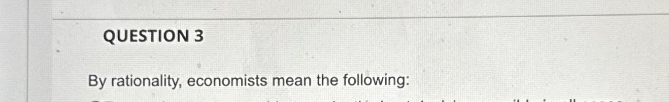 Solved QUESTION 3By rationality economists mean the Chegg com