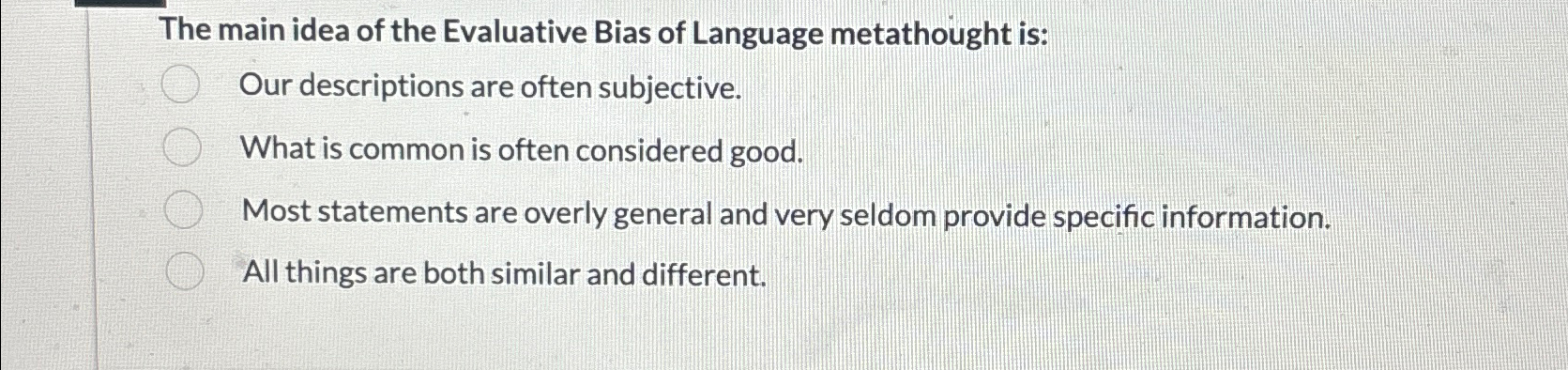 Solved The main idea of the Evaluative Bias of Language Chegg com