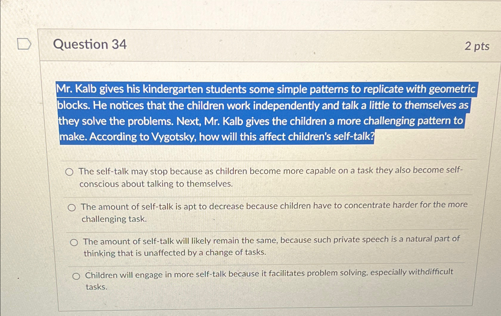 Solved Question 342 ptsMr Kalb gives his kindergarten Chegg com