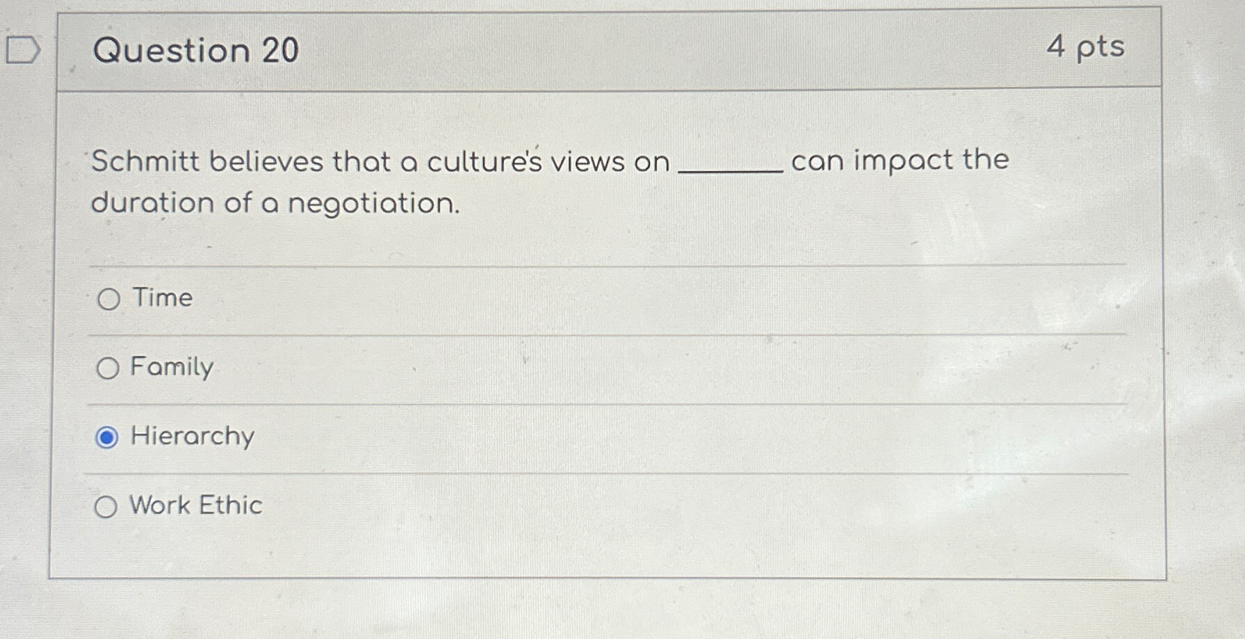 Solved Question 204 ptsSchmitt believes that a culture #39 s Chegg com