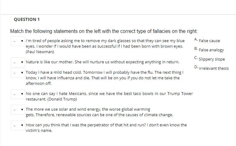 Solved QUESTION 1 Match the following statements on the left Chegg com