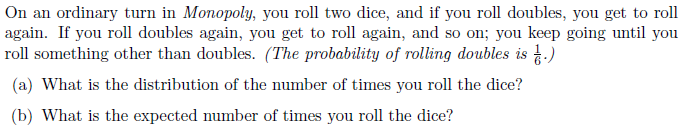 Solved On an ordinary turn in Monopoly you roll two dice Chegg com