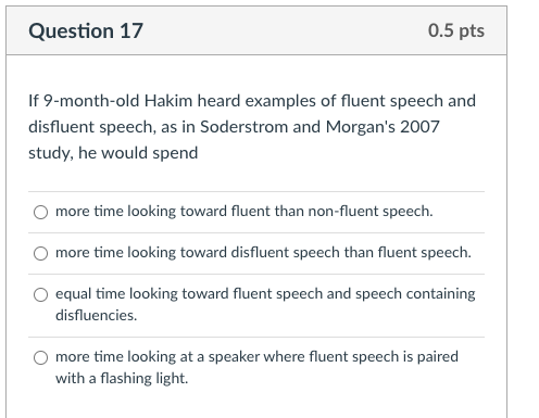 Solved Question 17 0 5 pts If 9 month old Hakim heard Chegg com