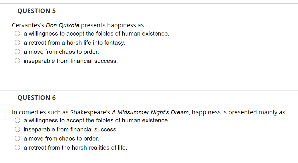 Solved Cervantes #39 s Don Quixote presents happiness as a Chegg com