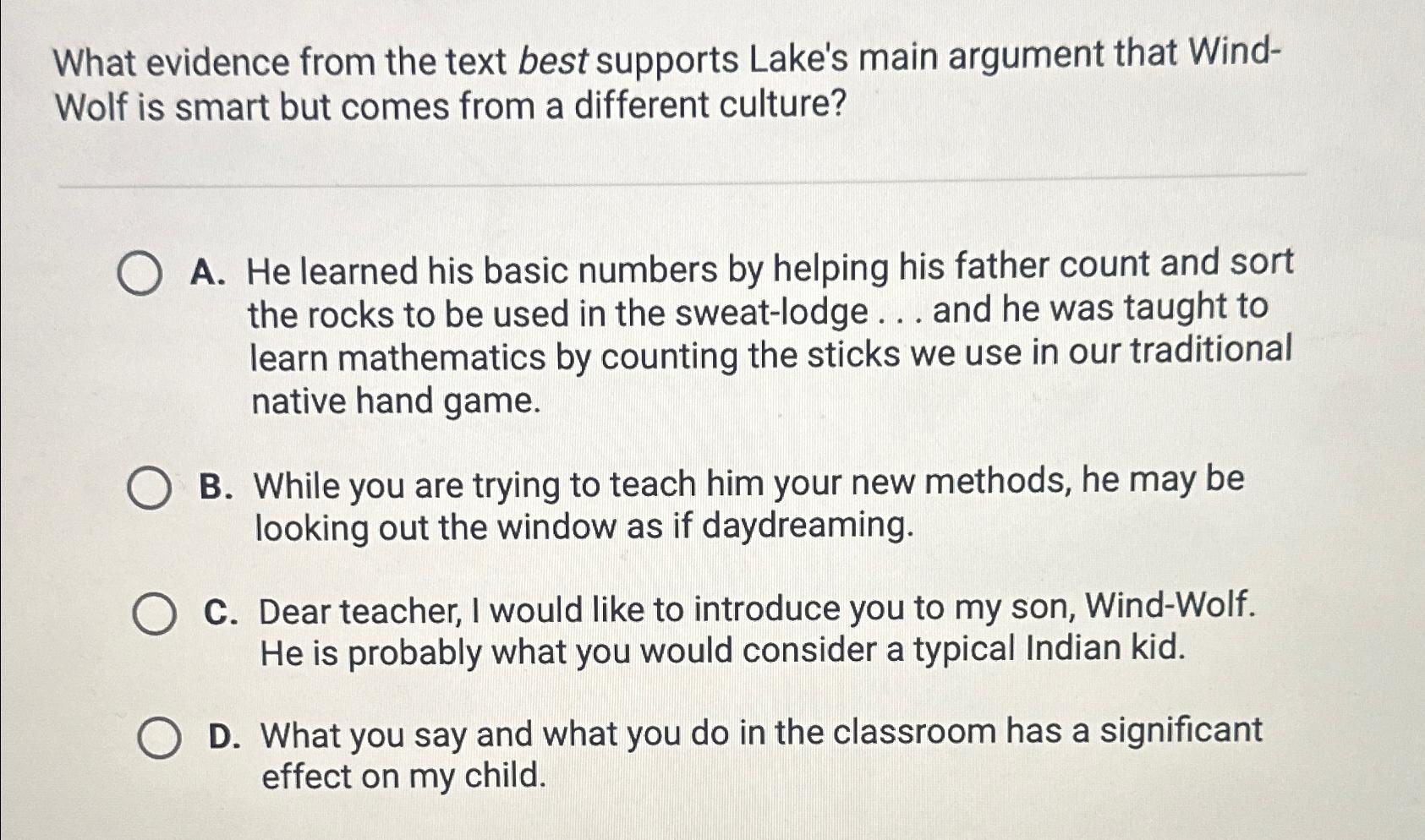 Solved What evidence from the text best supports Lake #39 s main Chegg com