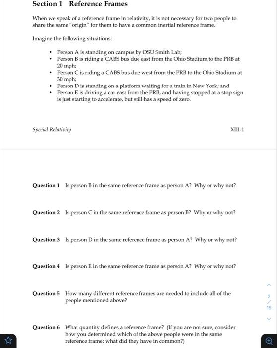 Solved Section 1 Reference Frames When we speak of a Chegg com