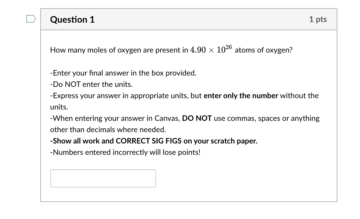 Solved Question 1 1 pts How many moles of oxygen are present Chegg com
