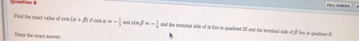 Solved Find the exact value of cos(a beta) if cos alpha= 1 Chegg com