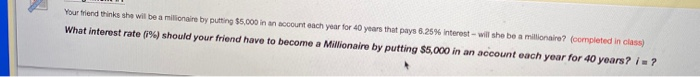 Solved Your friend thinks she will be a millionaire by Chegg com