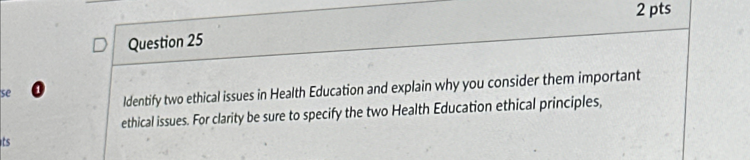 Solved Question 25Identify two ethical issues in Health Chegg com