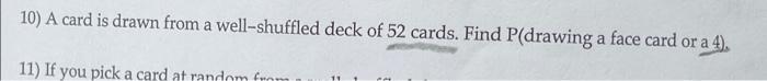 Solved 10) A card is drawn from a well shuffled deck of 52 Chegg com