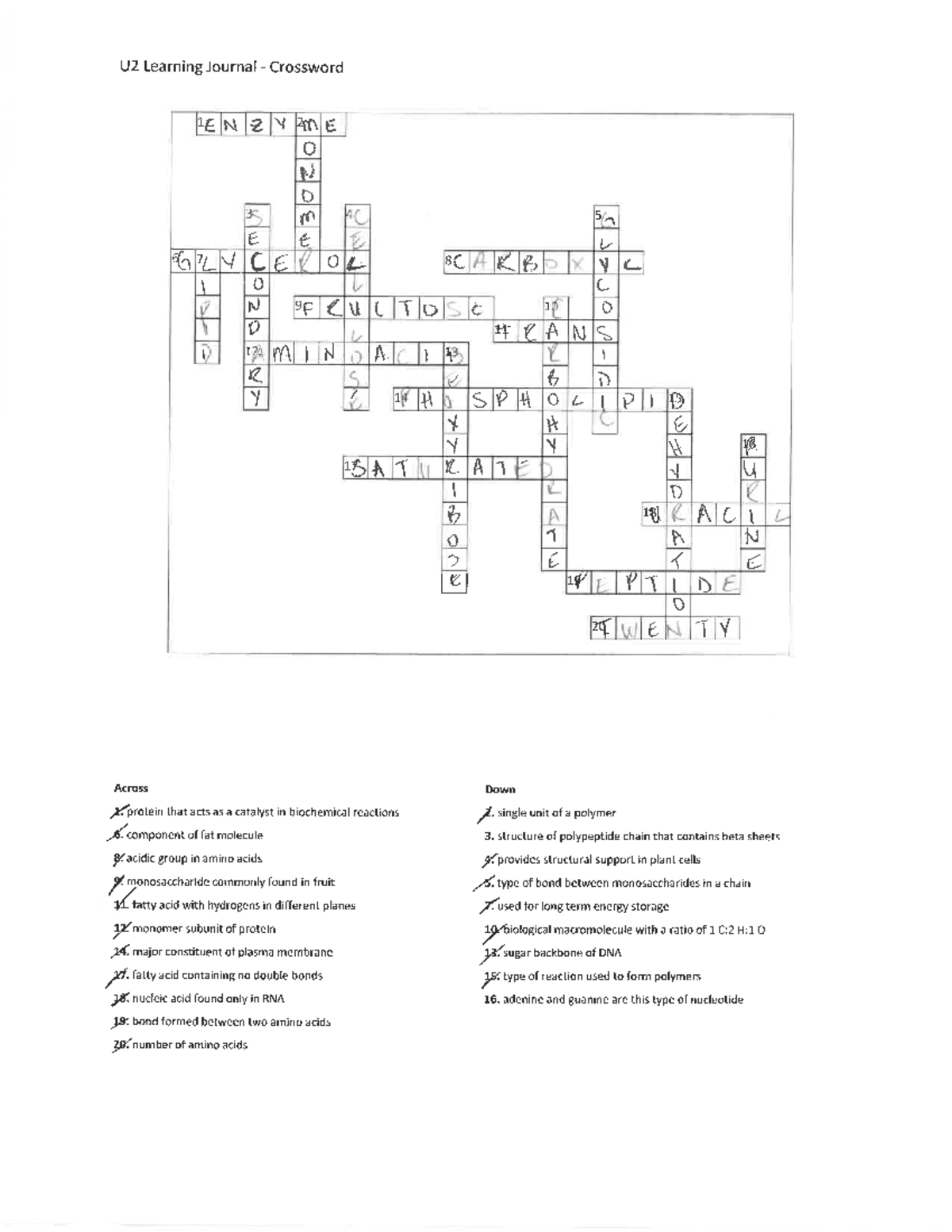 Crossword answered Learning Journal 2 Biology 1 for Health Studocu